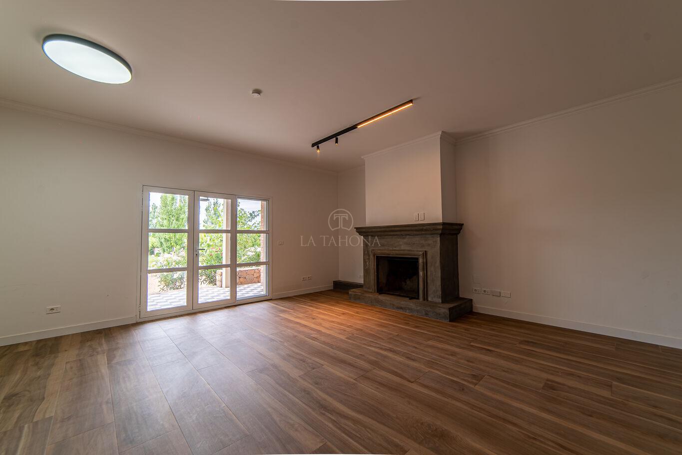 Tiene aire acondicionado en todos los ambientes y estufa a leña en el living/comedor. Además, cuenta con una cocina equipada con anafe, horno, campana y calefón.